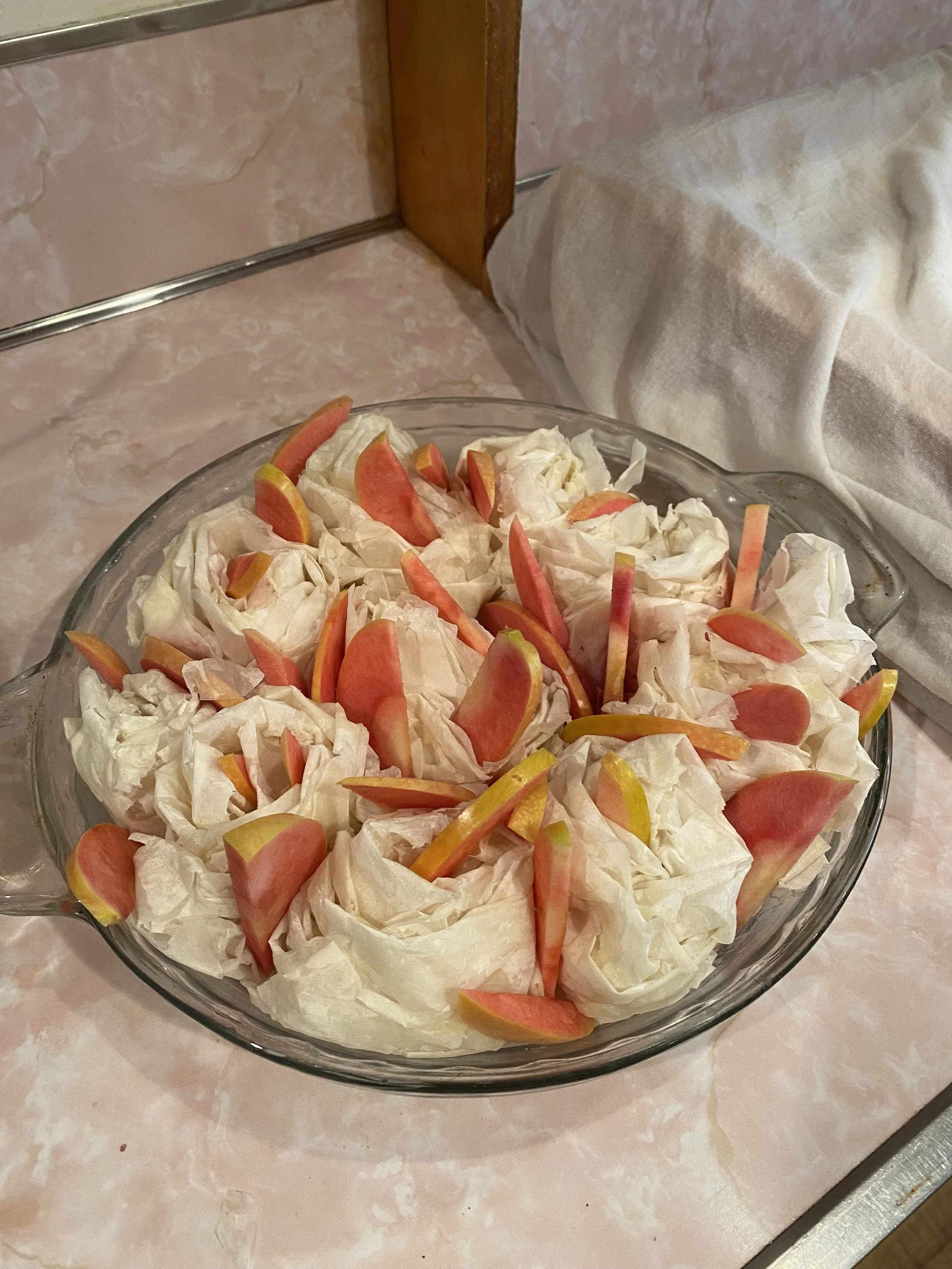 I flew from Oregon with mountain rose apples from Kiyokawa Family Orchards and of course everyone ooohed and aaahed over the pink flesh.