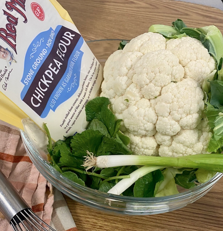 There are many versions of chickpea flour pancakes around the globe: Tuscan torta di ceci, Provencal socca, Ligurian farinata, Persian kuku besan, Indian besan chilla or pudla, Pakistani besan roti. We can follow their lead and create nutritious pancakes that are crispy on the edges, tender inside, and endlessly adaptable. You can keep them thin for a griddled pancake, cook them in a waffle iron, or spread the batter thicker in a cast iron skillet or baking dish and finish in the oven for a heartier version. They’re also a delicious way to use up vegetable or meat scraps!