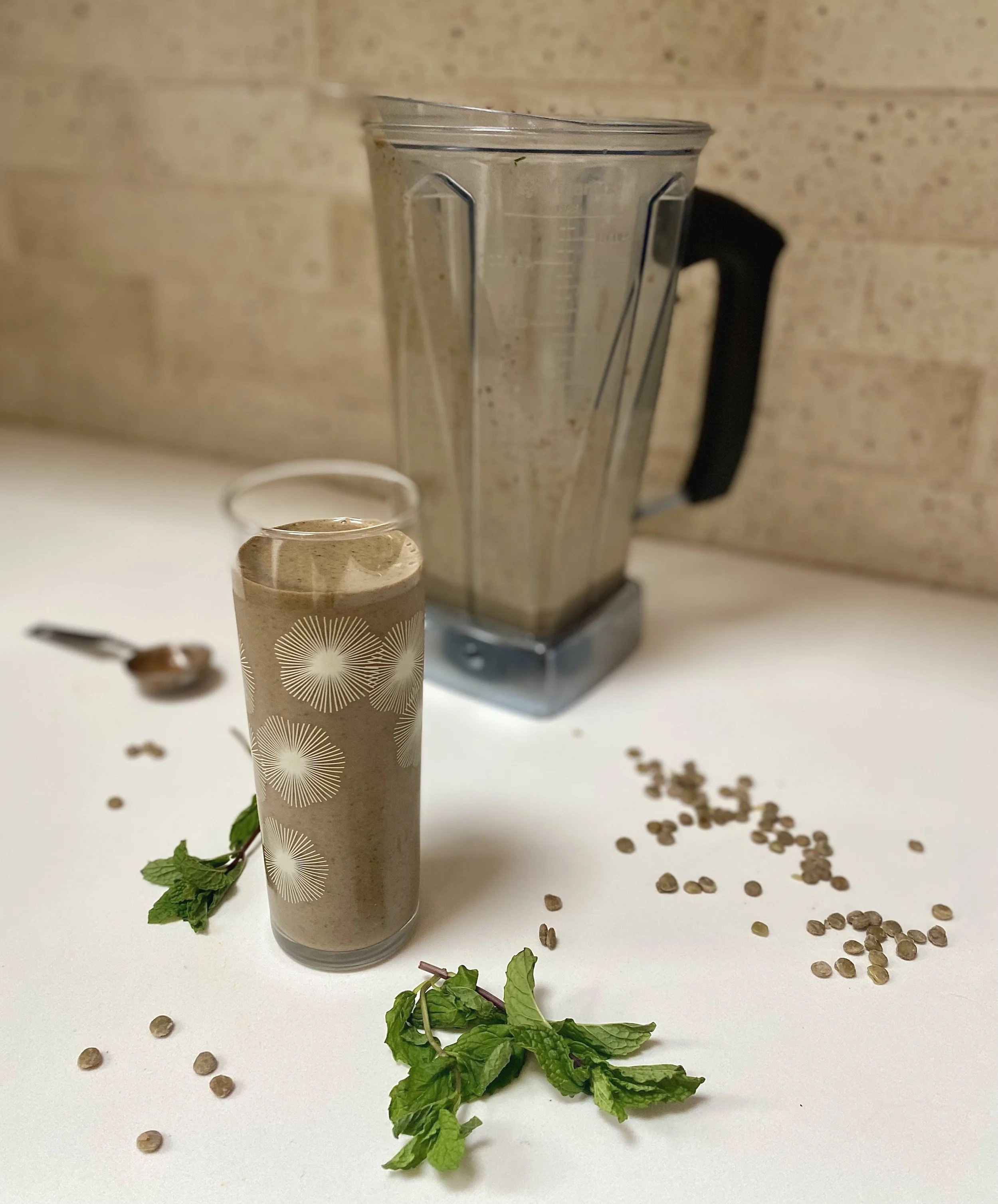 This smoothie is rich, refreshing, and surprisingly satisfying. It tastes like a mint chocolate treat, yet it’s built from things I actually want more of in my day like lentils, greens, and nuts. Brown lentils add body and staying power without changing the chocolate mint flavor, and other mild beans or chickpeas work well too. With frozen banana and frozen lentils on hand, it comes together fast. Use more milk for a thinner, sippable smoothie or less milk for a thicker, dessert-style blend, and feel free to swap in a different nut or seed butter.