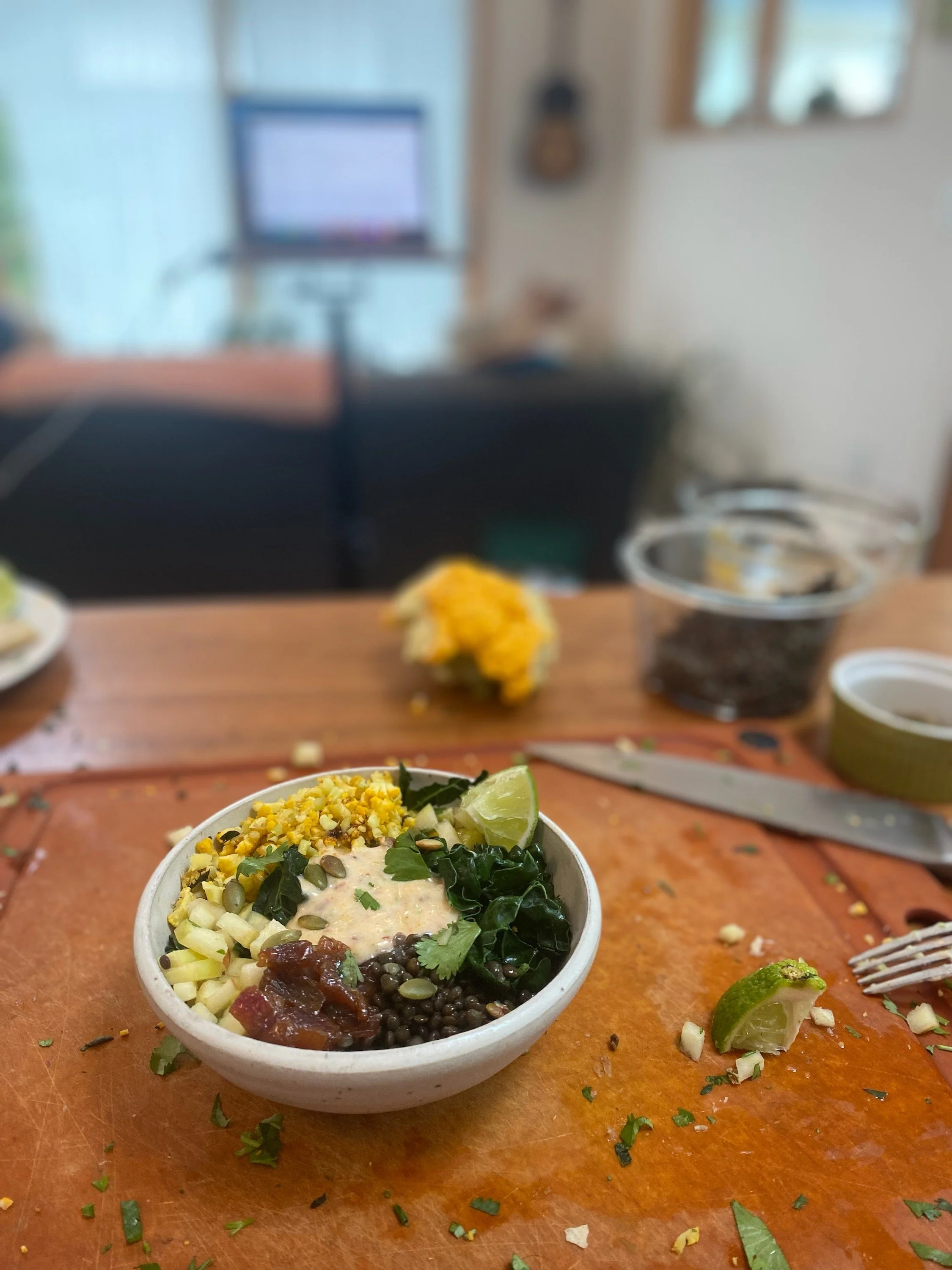 Smoked Cheddar, Apple & Cider Lentil Quesadillas - (we made it with Kale and Riced Yellow Cauliflower)